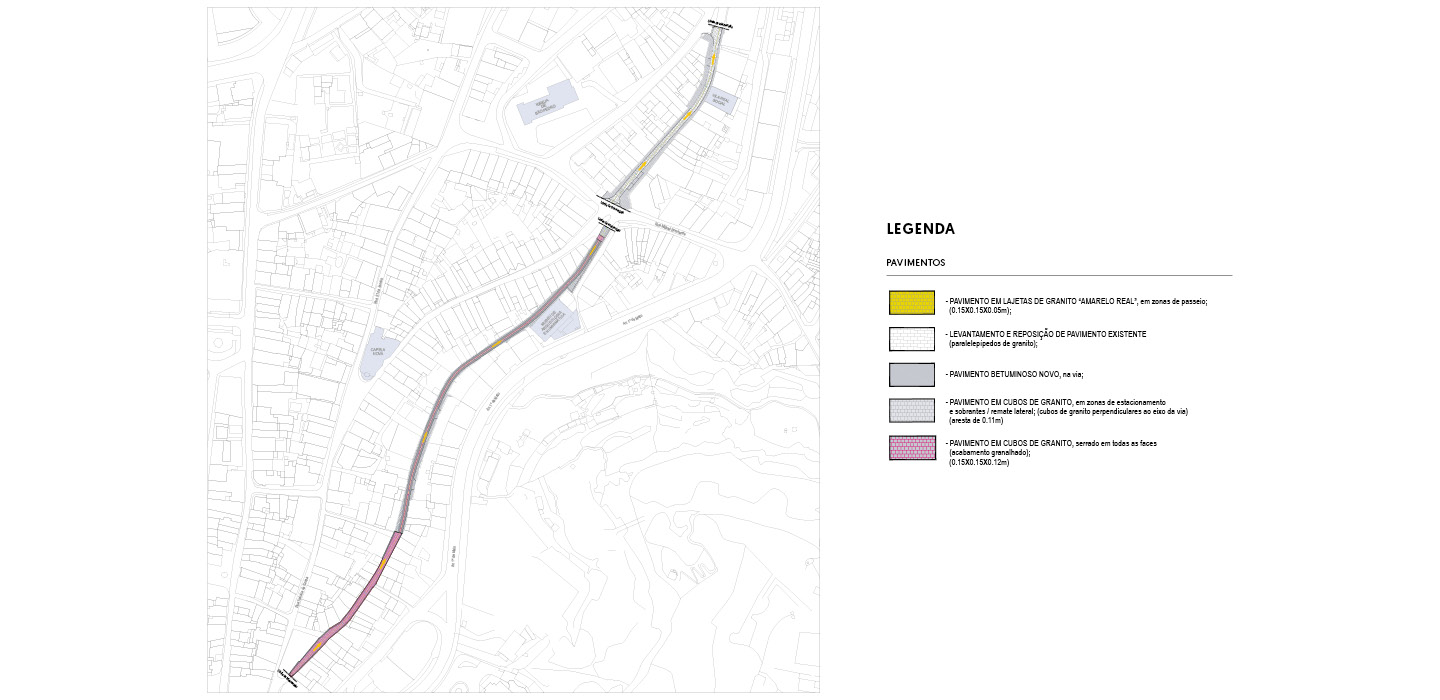 - Regeneração do espaço público, com mudança de pavimentos e relocalização de infraestruturas;
